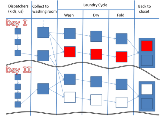 To begin with, you must understand the laundry cycle at our humble home. Let me draw a picture for you: